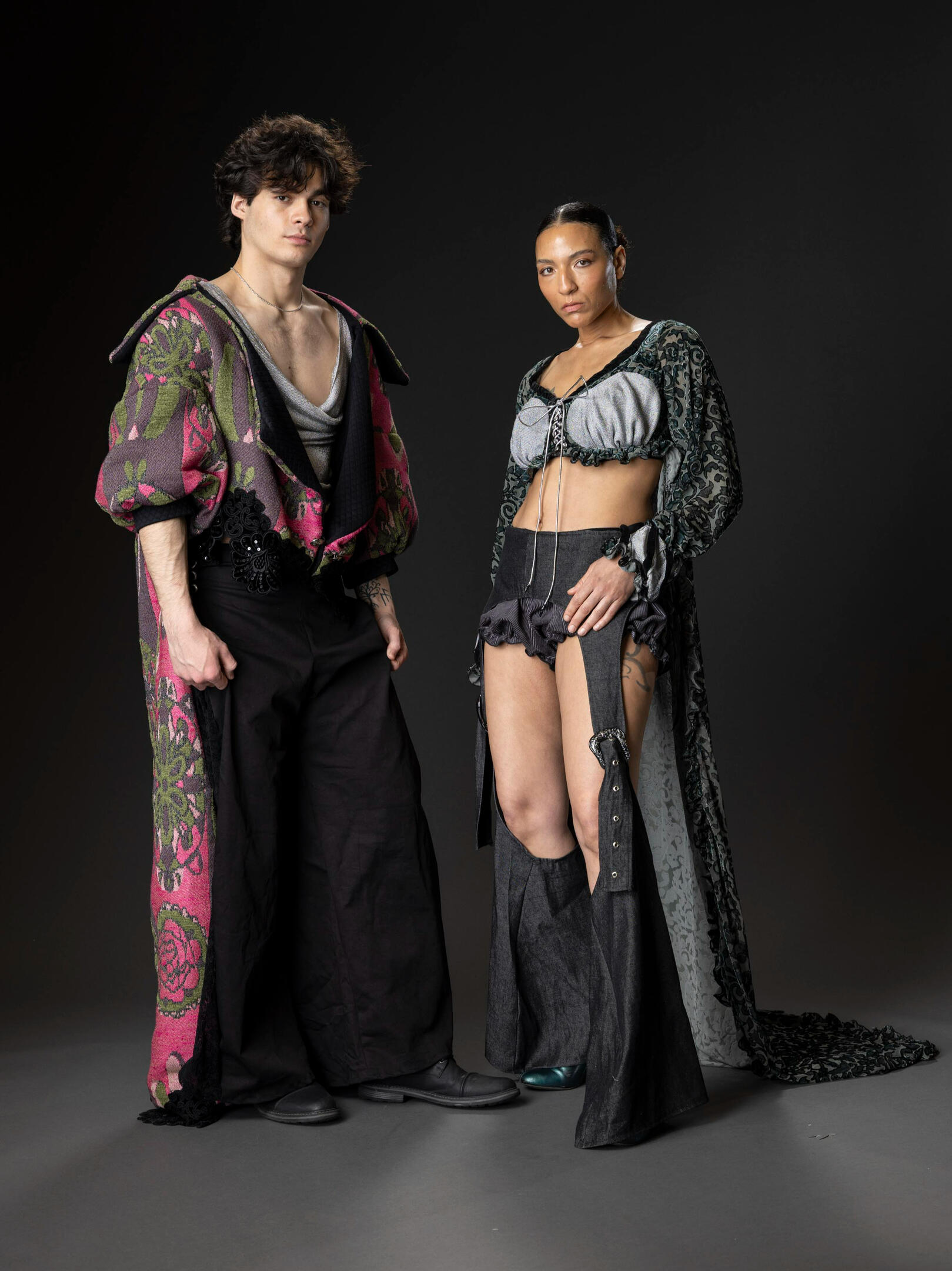 What happens when a knight returns from war crowned in honor, praised as a hero, yet quietly haunted by the violence carried out in glory’s name? This collection explores the tension between public triumph and private reckoning. Medieval silhouettes are reimagined within the pulse of the modern city, allowing echoes of those who once raised their swords against fear to walk among us again. Stained glass motifs weave through fabric like fractured memories. Armor-inspired tailoring and gothic architectural lines sculpt the body, while timeworn embellishments recall distant relics. Chivalry and streetwear, reverence and rebellion collide. A blade may catch the light and shimmer with honor, but the souls it once struck cast shadows that never fade.
