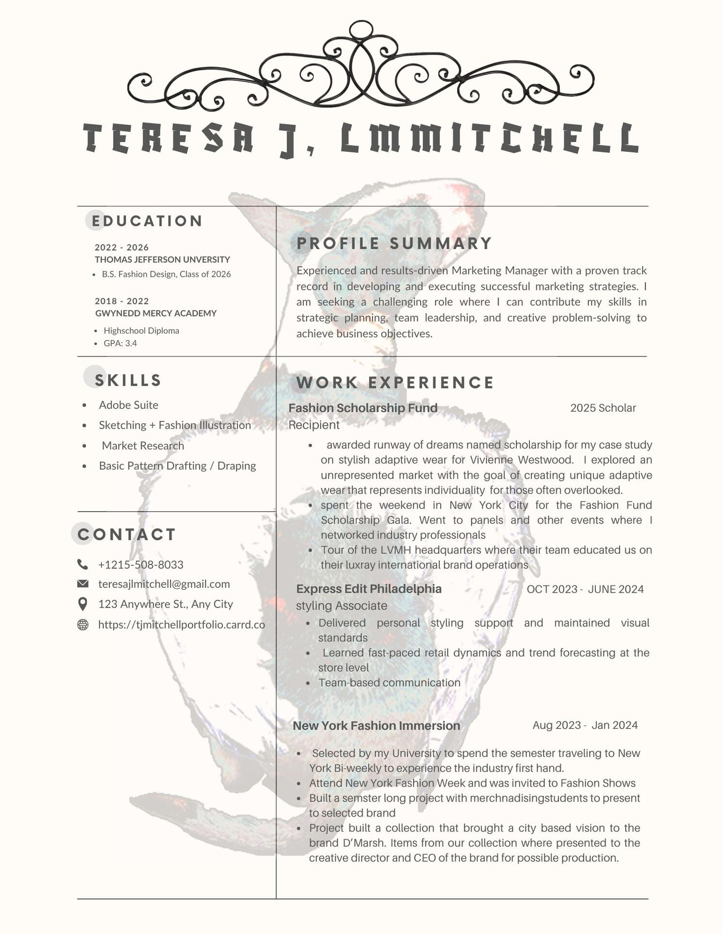 Fashion Designeremail: [email protected]current education: Thomas Jefferson University